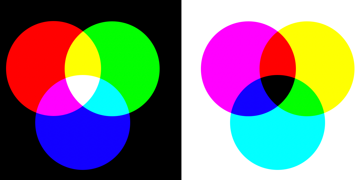 黑色发光体RGB加色,与白色反光体青品黄减色
