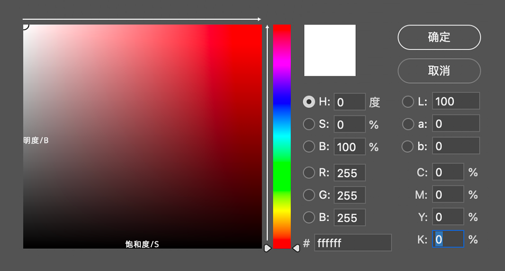 HSB可以看成是在一个白色物体上涂颜料,并用白色光照射这个物体,饱和度就是涂的颜料的多少,亮度就是照射这个物体的白光的强度。以红色为例,当红色涂的比较少时(饱和度较低)(只有薄薄的一层,过滤绿色和蓝色不彻底),物体会呈现出浅红色;当照射这个物体的白光强度越大(亮度越高),颜色就越亮,当饱和度和亮度都最高时,物体呈现最鲜艳的红色。当然以上是一种抽象理解,在实际操作中可以这样想象,并不是指实际定义。