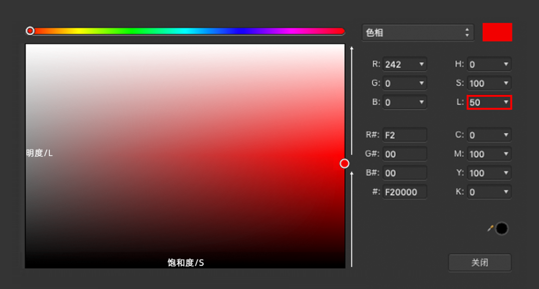 换句话说,对于HSL的S,我们会说“这个颜色鲜艳不鲜艳”,而对HSB的S则会说“这个颜色纯不纯”。而对于L和B,对L的形容是“这个光白不白”,而对B的形容是“这个光亮不亮”。